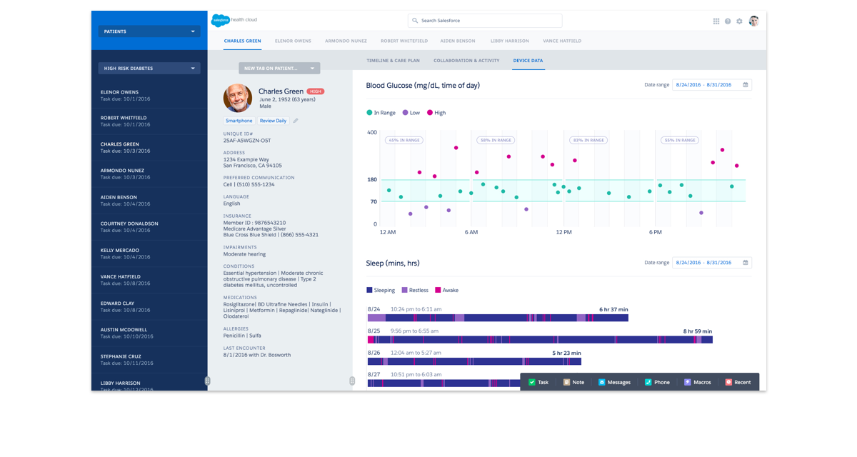 Salesforce Health Cloud lets you integrate directly with back-end data sources, making the right information easily accessible in the patient profile.