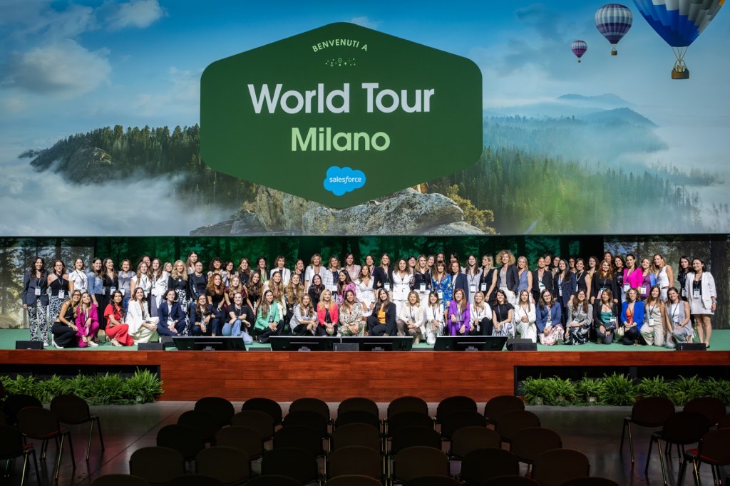 Le dipendenti di Salesforce Italia sul palco di World Tour Milano 2024