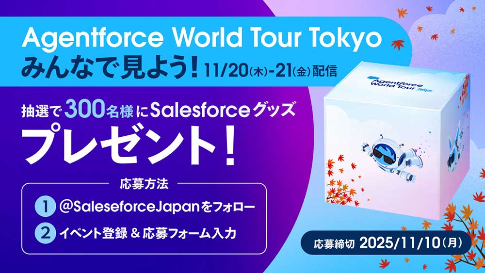 セールスフォース・ジャパンは11/20-11/21、国内最大級のAIイベント「Agentforce World Tour Tokyo」を開催します。