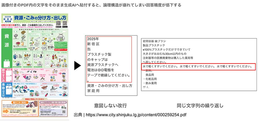 たとえば、こちら、ゴミ出しパンフレットPDFをChatGPTに読ませると、全く上手く読めていません。