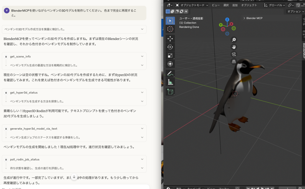 「Blender MCP」というものがあって、3Dモデルを作る「Blender」というアプリをMCPを経由して動かすことができます。