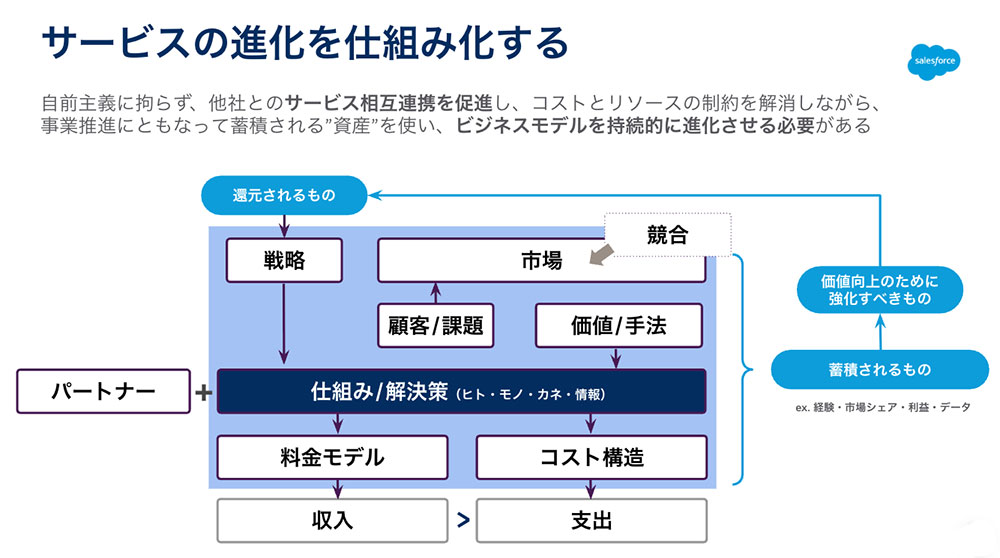 この3点が組み合わさることで、サービスが進化し続けるビジネスモデルを作ることが可能になります。