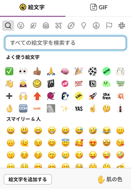 • カスタム絵文字は、ワークスペース内の全メンバーが使用できるようになります。