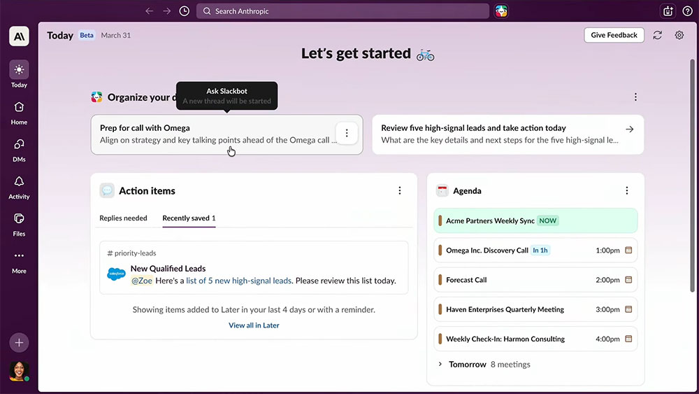 1人の営業担当者が、1人のAIエージェントを会話の中で持つ。Slackはこれまでも仕事が進められてきた場所でした。そして今やSlackbotが、仕事がどう進み、どう起きるかを形作る存在になっています。