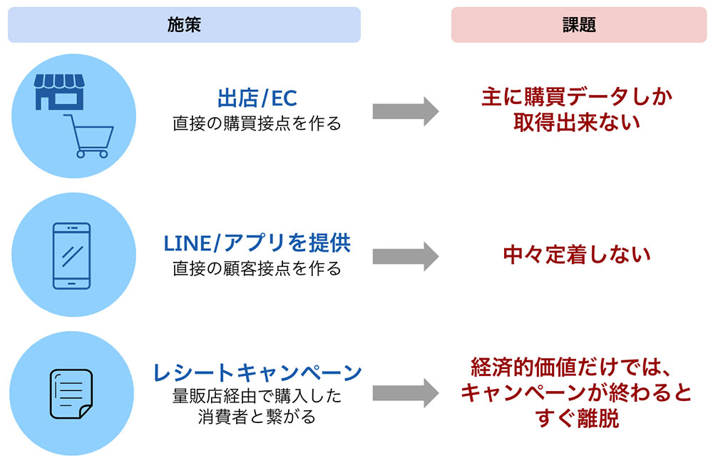 • ECサイトでの販売: 主に購買データしか取得できない。