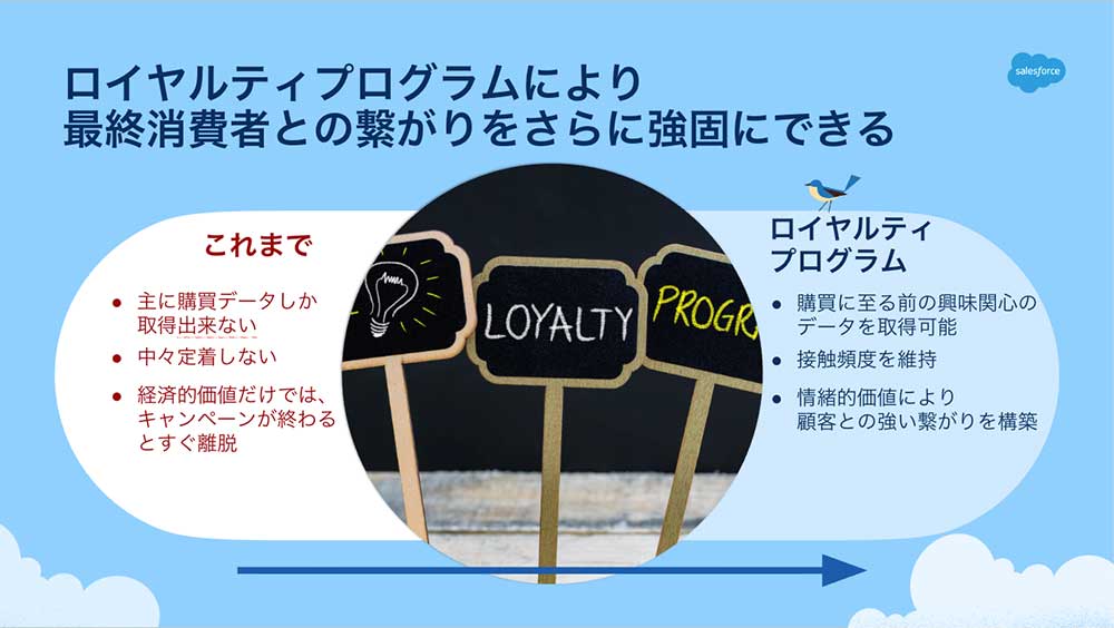 顧客と“直接つながる”ことを求める消費財企業が増えている中、B2Cロイヤリティプログラムが注目を集めています。その理由と、このプログラムを生かした先進事例をセールスフォース・ジャパンで小売業界のインダストリーアドバイザーを務める小川哲が解説します。