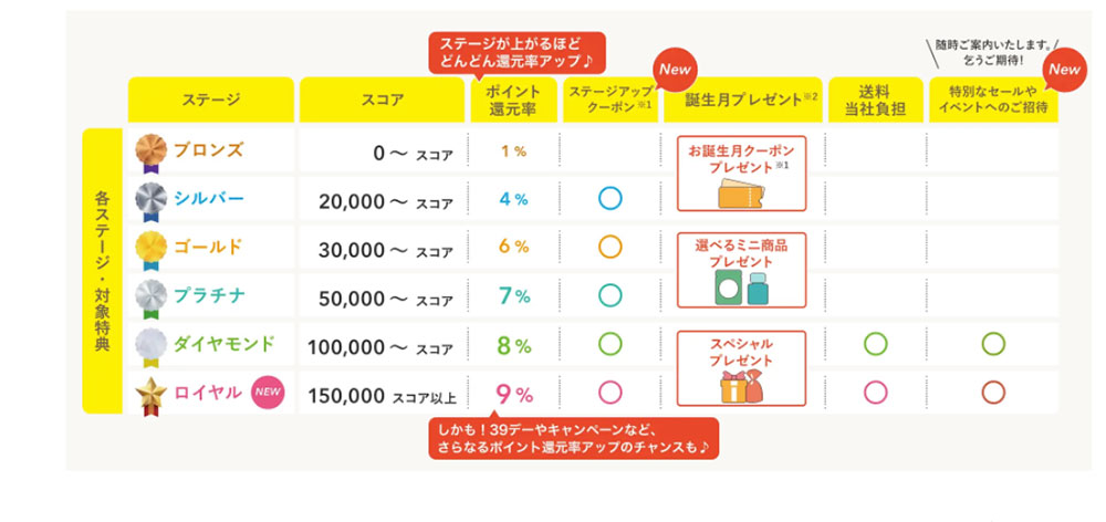 MECCAのロイヤルティプログラムを支えているのがSalesforceの「Loyalty Management」です。店舗やECでの購入金額に基づいて会員ランクを算出し、ランク別の特典も付与しています。