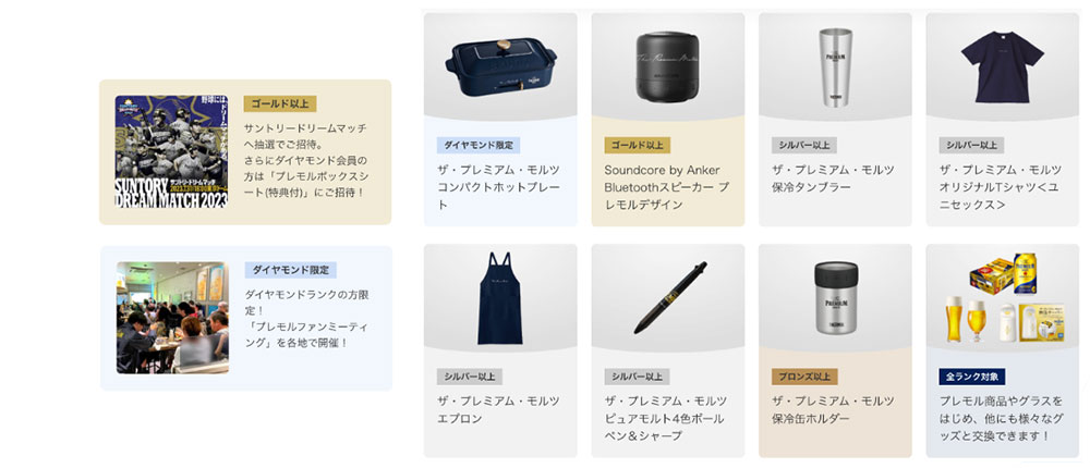 さらに特典には、限定グッズに加え「サントリードリームマッチ」への招待や「プレモルファンミーティング」への参加権といった、サントリーならではの体験を用意し、ファンの心を掴んでいます。
