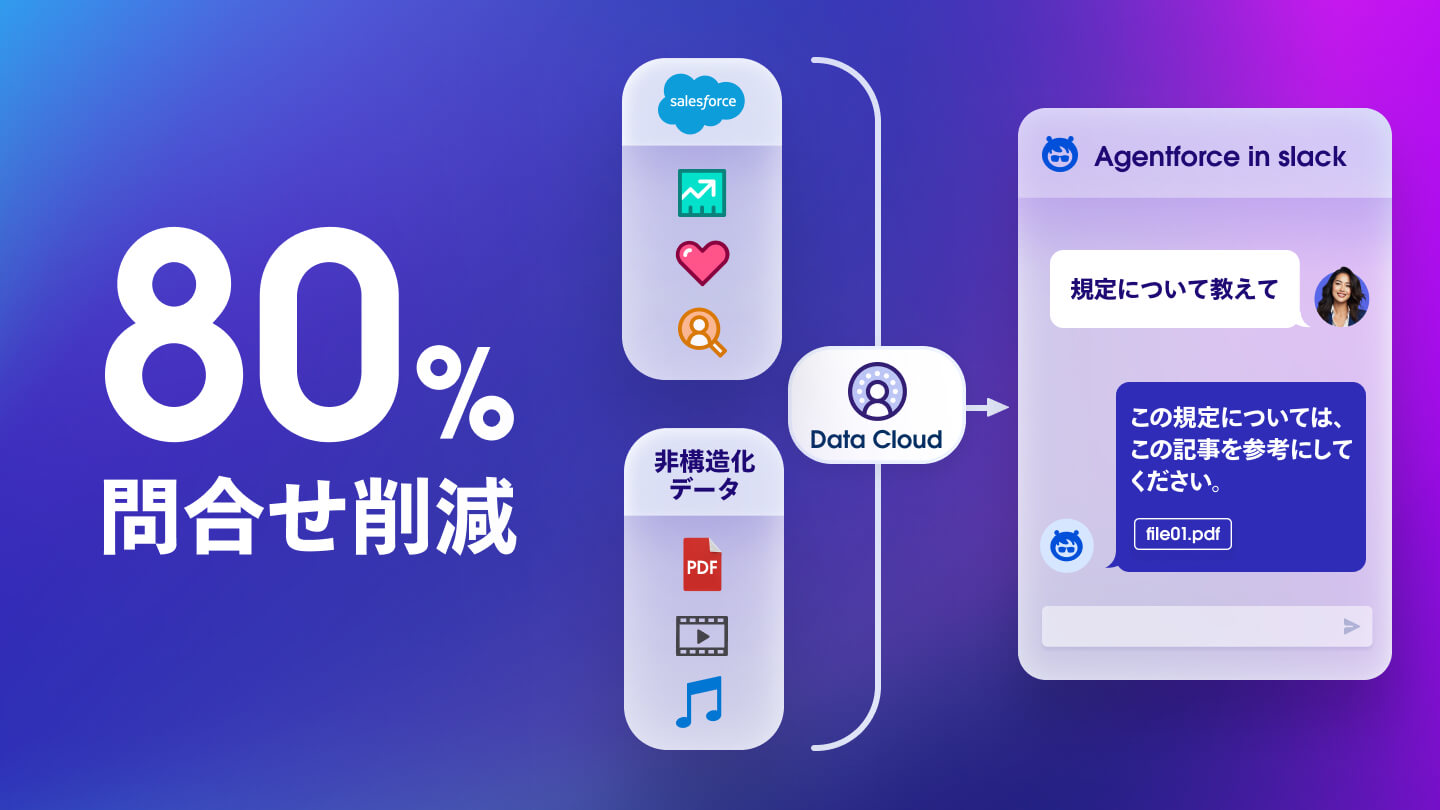 最大の価値は、習慣を壊さないことでした。社員はいつも通りSlackを開き、ただ宛先がAIに変わるだけです。導入のハードルがほぼゼロだから、浸透のスピードが違います。Agentforceは自然言語で業務文脈をそのまま受け止め、Data Cloudは社内のマスターデータとして回答の均質化と最新化を支えます。解けない問いは既存のSlack運用に沿って即座に人へ橋渡しされます。この“連続性”こそ、Salesforceがもたらす体験設計です。