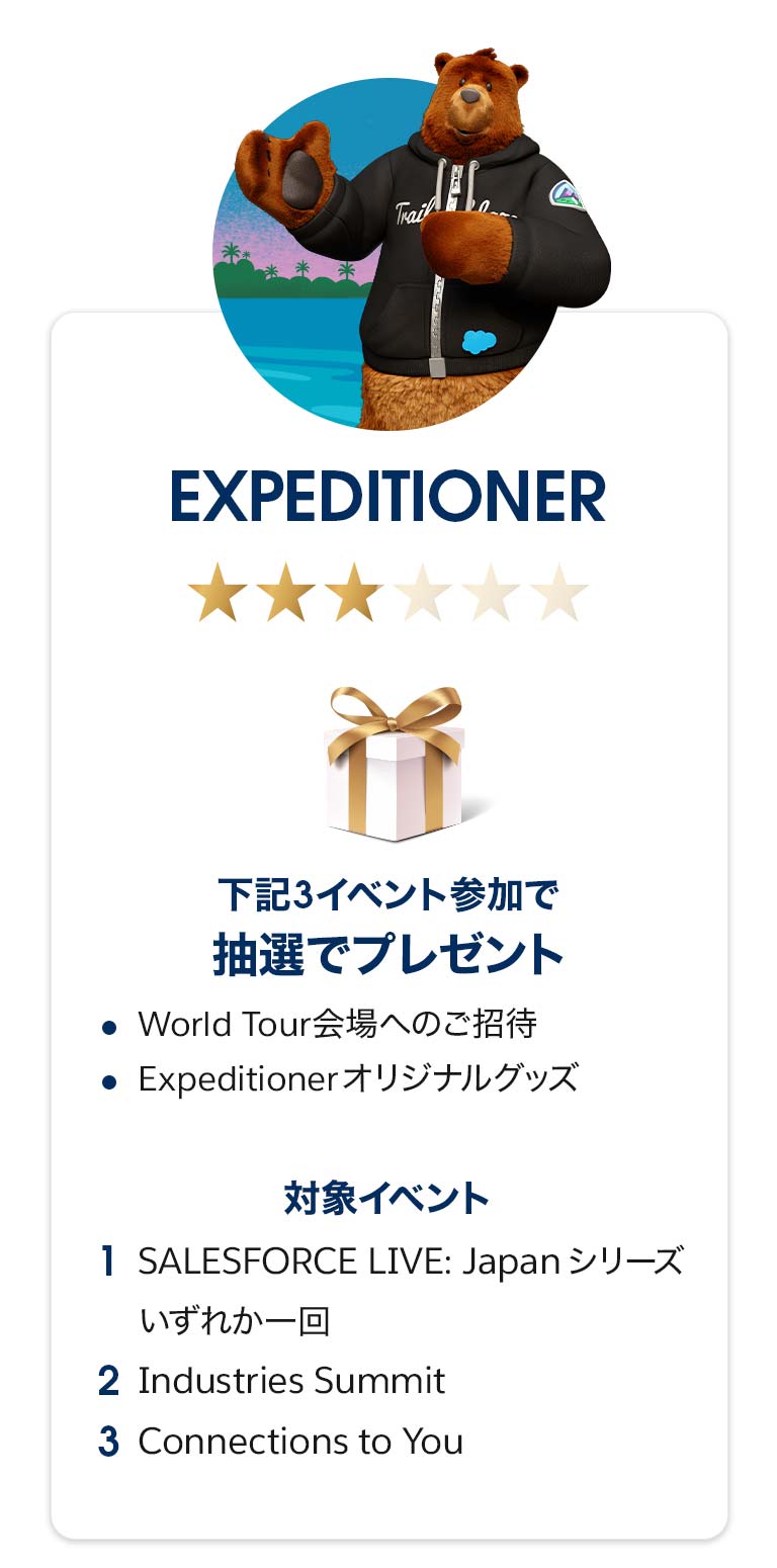 - 当プレゼントキャンペーンは、Salesforceのグローバル規約に則って運営されています。