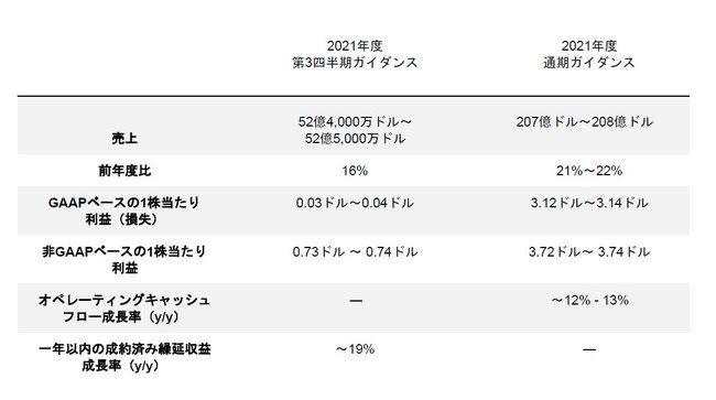 - 2021年度第3四半期の売上ガイダンスは前年比約16%増の52億4,000万ドル~52億5,000万ドル