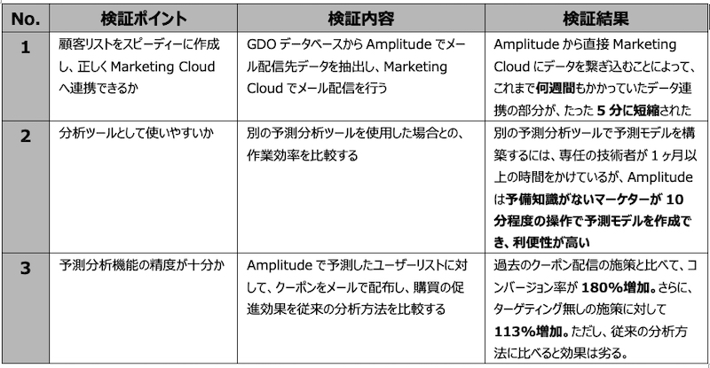 さらに、Amplitudeが持つ「予測分析機能」についても分析速度・精度の向上に関する検証を行いました。