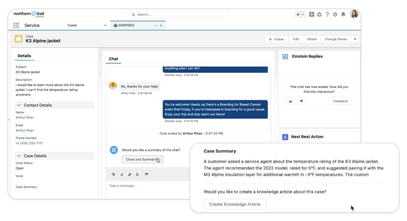 - サービスチームは、生成AI機能を活用して、信頼できるケースデータと顧客履歴に基づいてサービスのブリーフィング、ケースサマリー、作業指示書を自動的に作成できるため、チームは卓越したサービス体験の提供に注力できます。