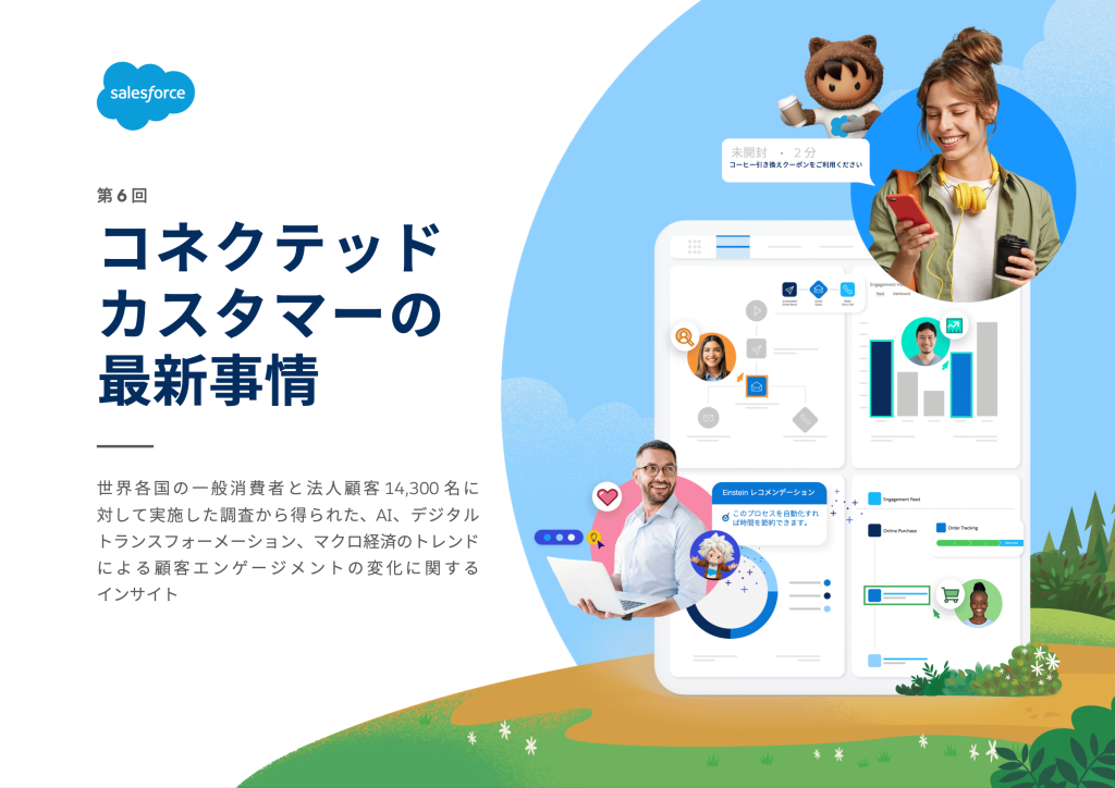 株式会社セールスフォース・ジャパン(代表取締役会長兼社長 小出 伸一、以下 Salesforce)は本日、年次調査レポート「コネクテッドカスタマーの最新事情」(第6版)の日本語版を公開しました。本レポートでは、日本からの650人を含む世界25ヵ国の一般消費者と法人顧客14,300人を対象に実施した調査結果をまとめており、AI、デジタルトランスフォーメーション、マクロ経済のトレンドが、購買ライフサイクル全体で顧客の期待や行動をどのように変化させているかを明らかにしています。