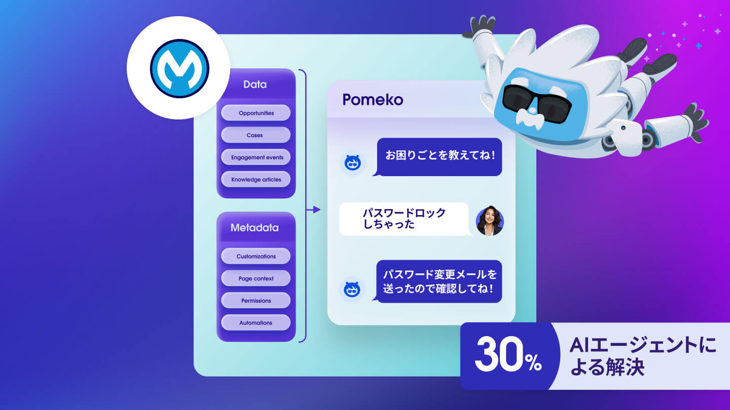 情報システム部門では専用のSlackチャンネルを運用し、社員からの問い合わせを一元的に集約していました。しかし、多くの社員がエンジニアであるためITリテラシーが高く、問い合わせ内容が複雑化。加えて社員数の拡大により、回答にかかる人的リソースが不足しがちでした。そこで採用されたのが、対話型で要望に応えるAgentforceです。愛着を持って利用してもらえるよう「Pomeko(ポメコ)」というユニークな名称を付け、問い合わせの約30%を完結まで対応できる頼もしい“相棒”へと成長させました。