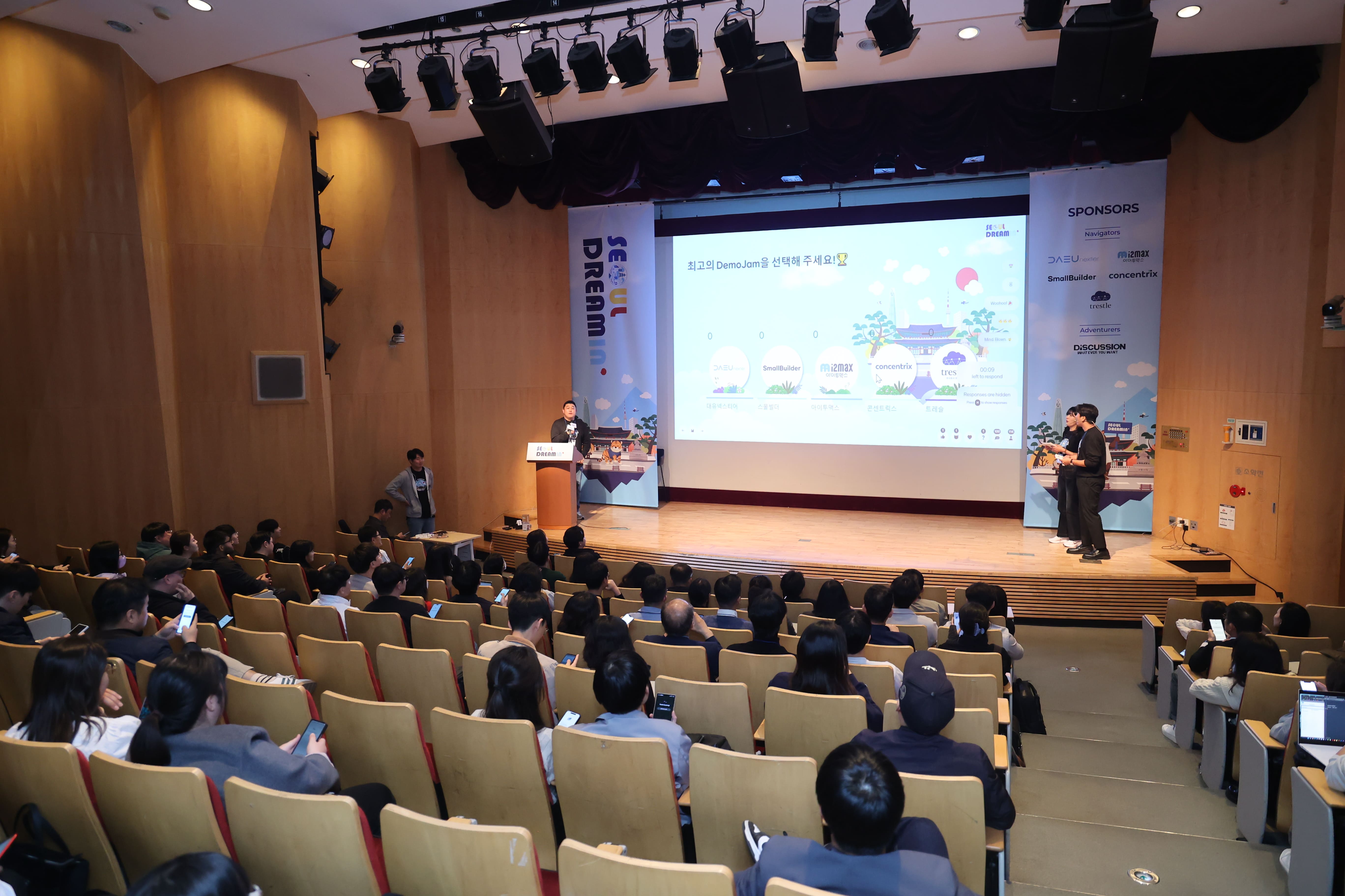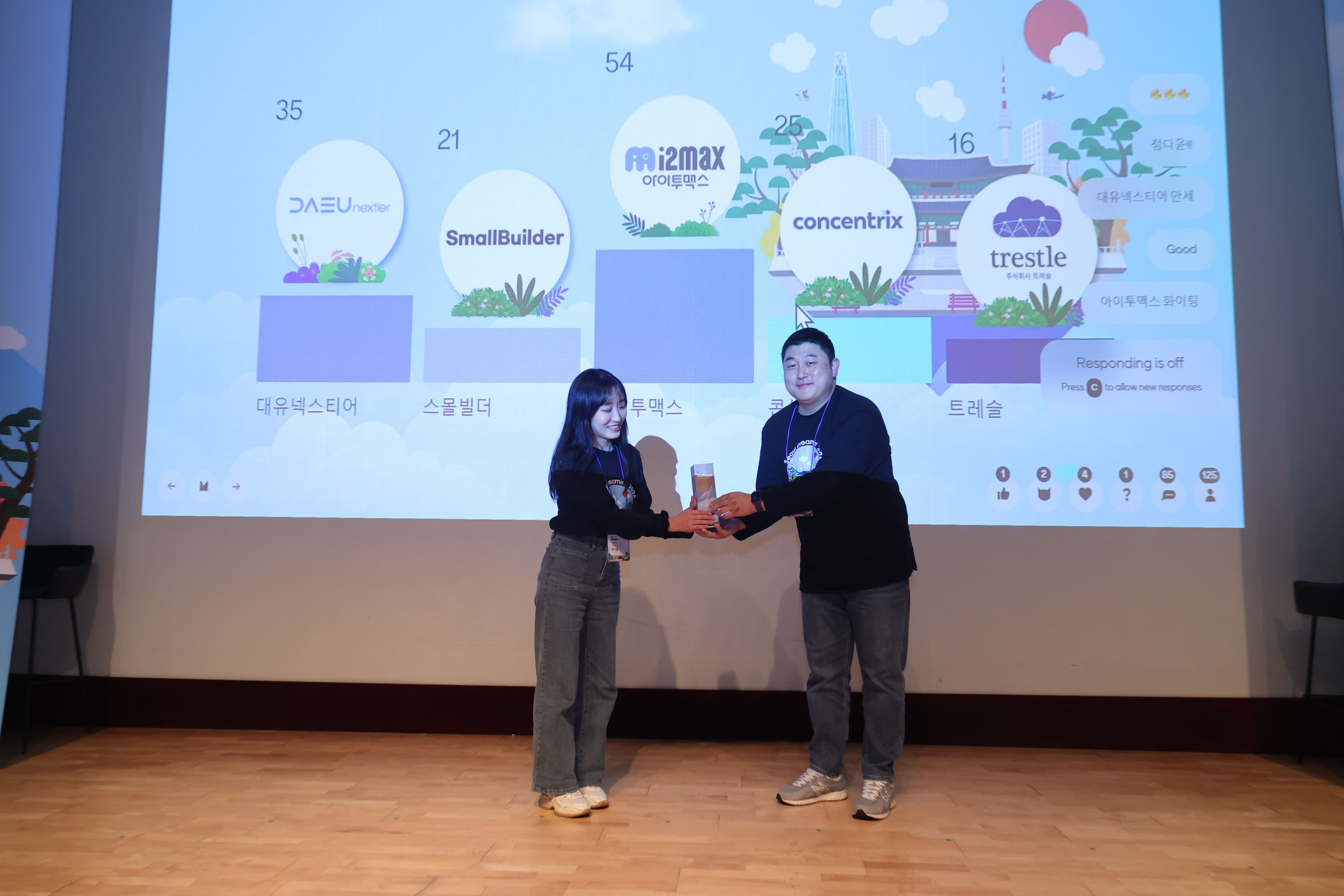 모든 팀의 숨 가쁜 발표가 끝나자마자 현장 참석자들을 대상으로 긴장감 넘치는 투표가 이어졌습니다. 치열한 경합 끝에 이번 서울 드림인 행사 Demo Jam의 우승은 아이투맥스의 ‘i2DMS’가 차지하며 뜨거운 박수를 받았습니다. 🥳