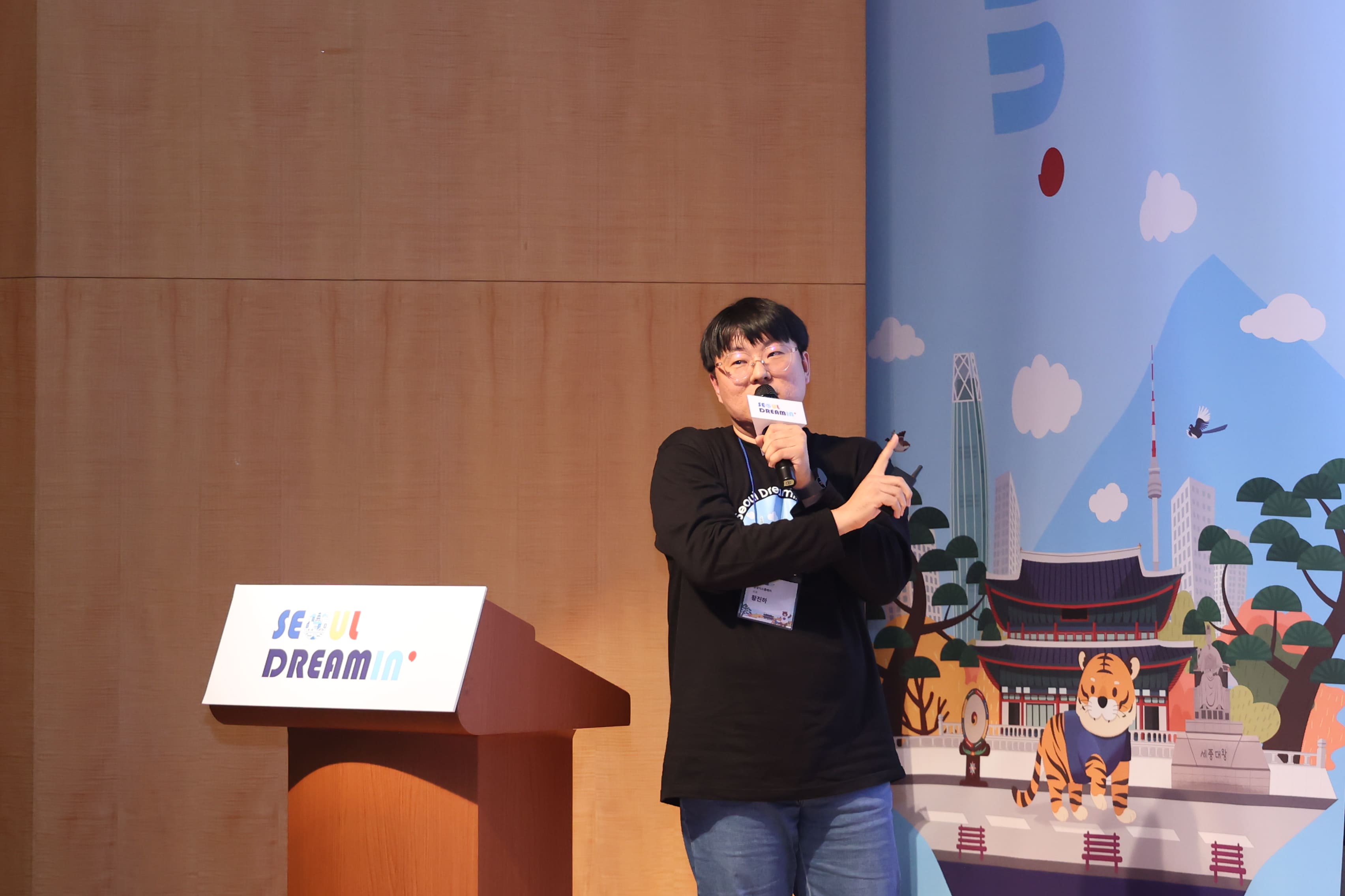 Demo Jam 세션에서는 서울 드림인 행사에 스폰서로 참여한 5개 트레일블레이저 기업이 각사의 프로덕트를 3분 내로 소개하며 치열한 라이브 데모를 펼쳤습니다. 특히 모든 발표가 제한 시간을 1초 남기고 끝나는 기적 같은 일이 벌어졌는데요. 짧은 시간 안에 자사 제품의 핵심 기능을 강조하면서 현장을 뜨겁게 달아올랐습니다.