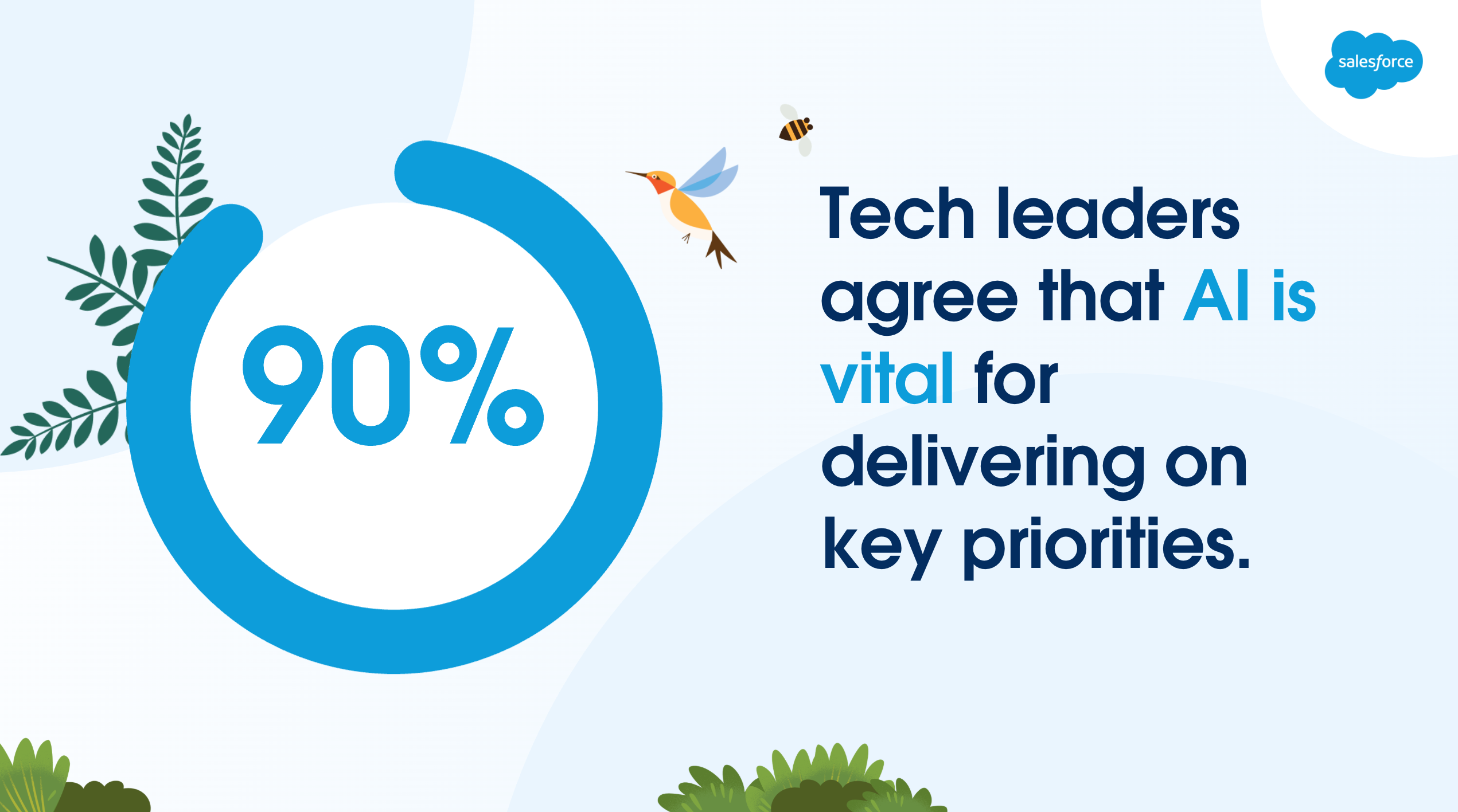 - 기술 리더의 90%가 주요 우선순위를 달성하는 데 AI가 필수적이라는 점에 동의합니다.