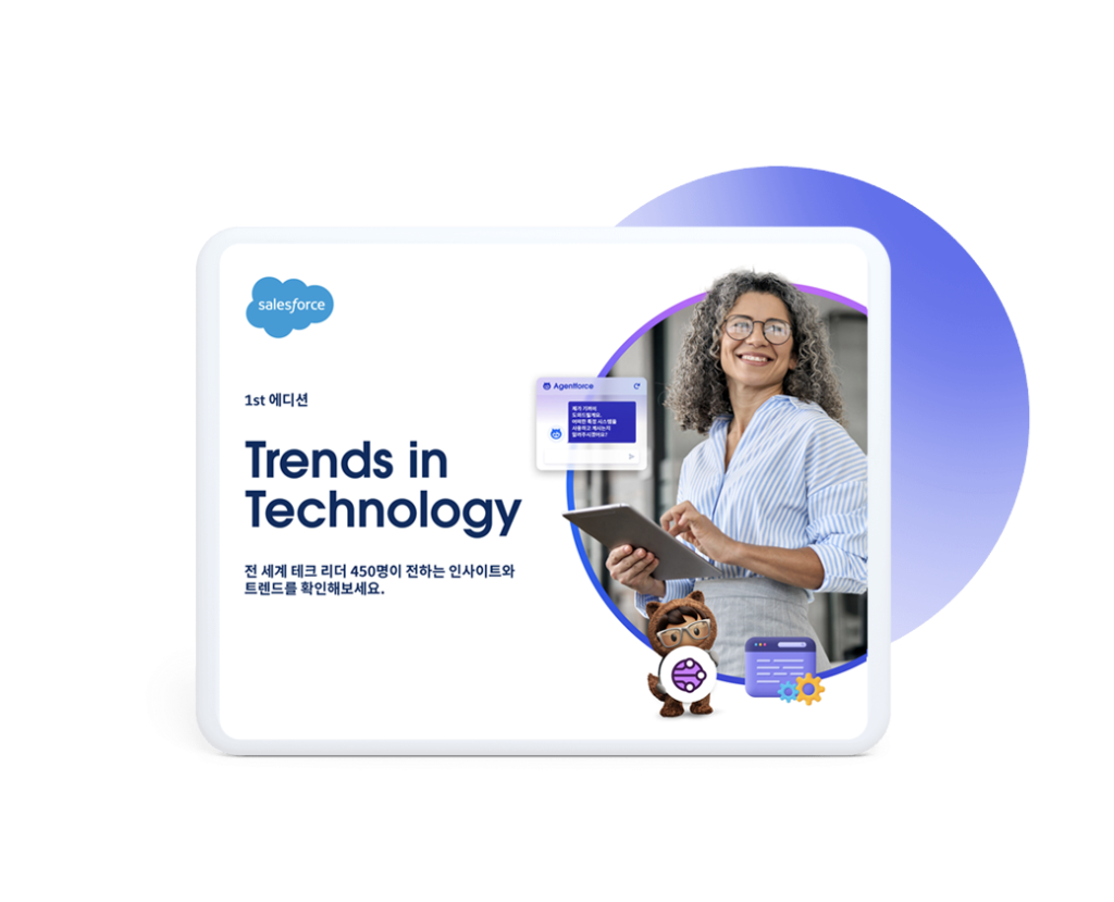 기술 트렌드 보고서의 핵심은 간단합니다. AI 에이전트의 시대는 이미 시작됐고, 그 기반은 지금 구축하는 기초 데이터 구조에 달려 있습니다. CRM은 AI에 정보를 제공하는 진정한 단일 정보 공급원이며, AI가 수행하는 모든 작업이 스마트하고 관련성 높으며 신뢰할 수 있도록 보장합니다. 또한 Salesforce는 여러분과 함께 성장할 수 있도록 특별히 구축된 제품군을 제공합니다.