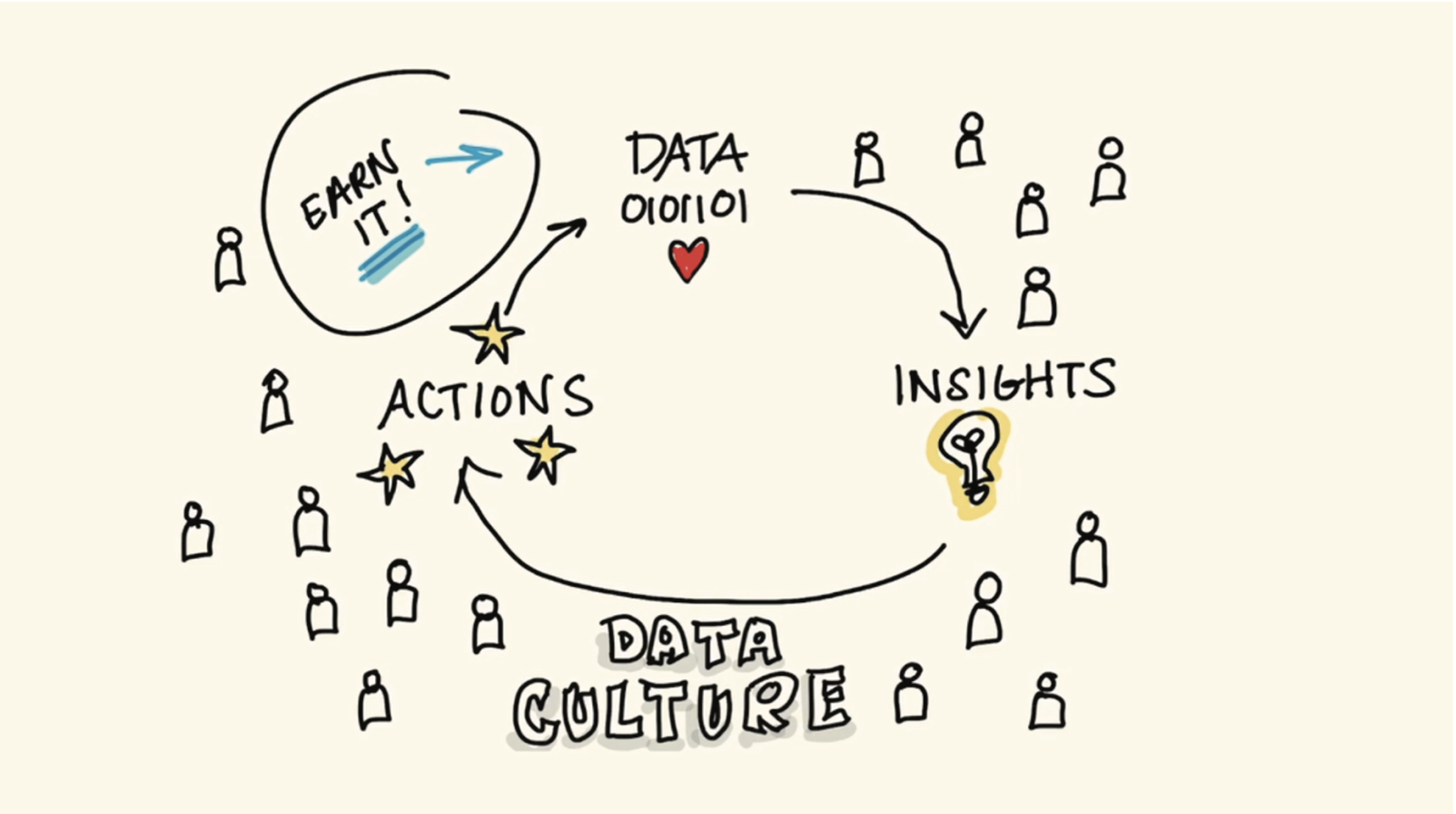 마지막으로 우리는 이러한 선순환 구조가 병목현상 없이 순조롭게 작동할 수 있도록 조직문화까지 점검해야 합니다. 정보를 개인이 소유하고, 정보를 권력으로 활용하게 된다면 이러한 데이터 생태계는 점점 무너질 수 밖에 없습니다. 때문에 정보의 투명성을 보장해야 하며, 세일즈포스는 이를 ‘데이터 문화’라고 이야기합니다.