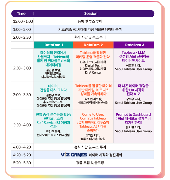 Tableau DataFest Korea에서 만나보시길 바랍니다.