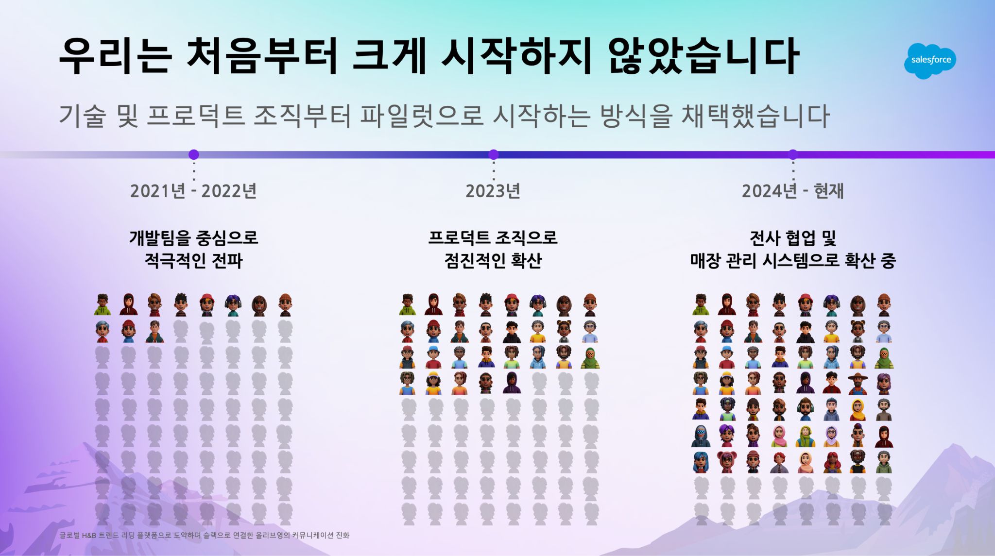 도입 초기에는 테크 조직 중심의 파일럿 프로젝트였지만, 2024년부터 마케팅, 영업, 운영, 인사 등 전사 조직으로 Slack을 확산하며, 알림 자동화, 이슈 대응, 실시간 의사결정 체계를 갖춘 민첩한 협업 환경을 구축했습니다.