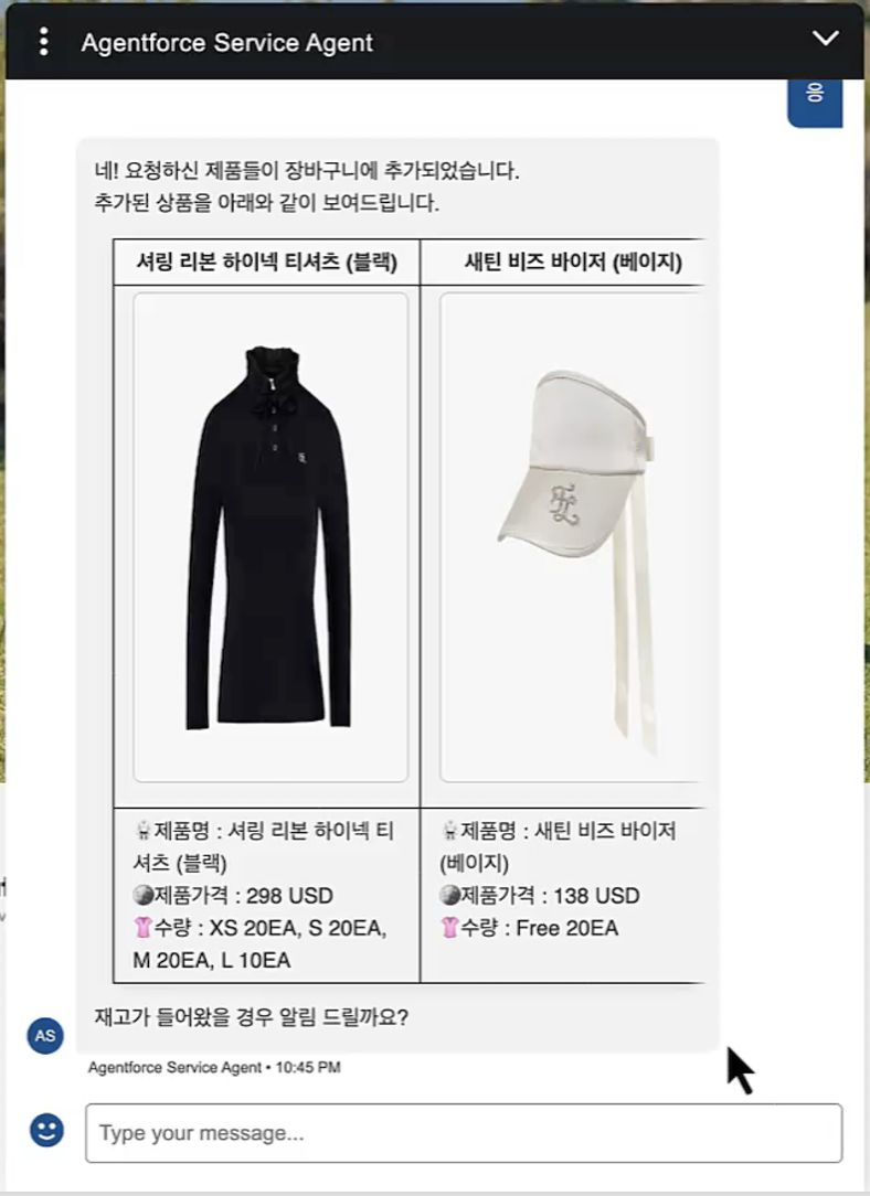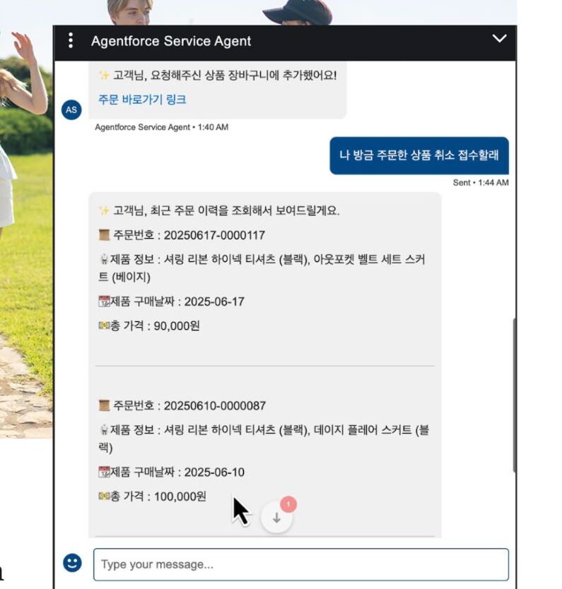 특히 고객의 과거 구매 데이터를 기반으로 한 개인화 추천, 반복 문의에 대한 자동 응대, 복잡한 요청 처리 등은 모두 Agentforce를 통해 자동화되고 있으며, 단순 응답을 넘어 ‘실행 가능한 AI’로의 진화를 실현하고 있다는 점이 큰 차별점입니다.