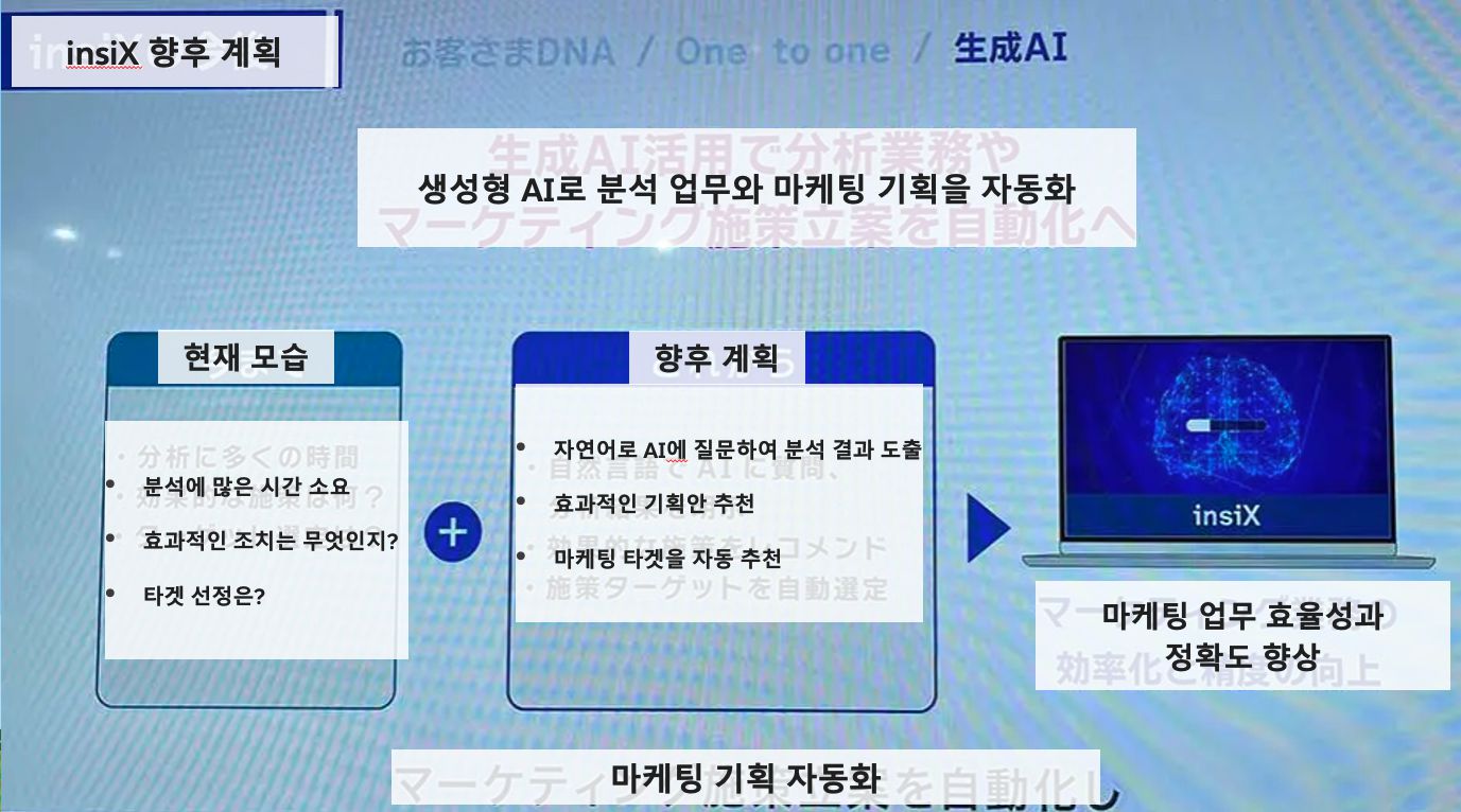 앞으로는 AI를 활용한 고객 DNA 분석, LINE·SMS·웹사이트·디지털 사이니지를 포함한 1:1 마케팅 강화, 생성형 AI를 활용한 마케팅 시책 입안 등의 기능 확장이 예정되어 있습니다.