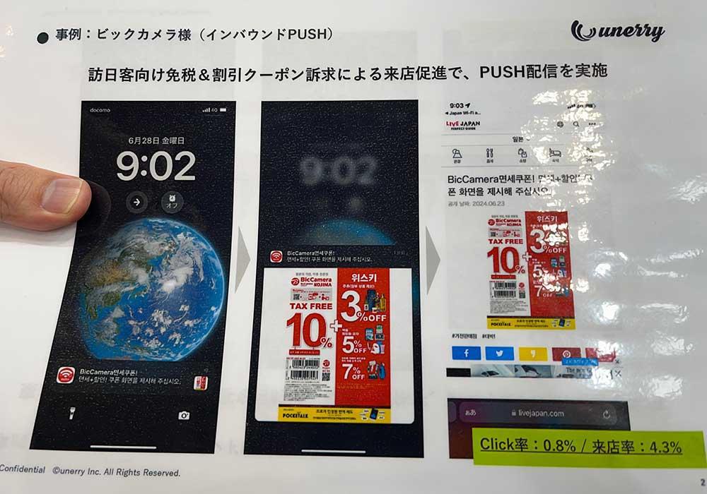 이 서비스는 외국인 관광객이 많이 사용하는 'Japan Wi-Fi auto-connect' 앱에 Unerry의 비콘을 통합해, 국적별 주요 이동 경로, 체류 일수, 특정 점포나 시설 방문 정보 등을 분석할 수 있도록 합니다.