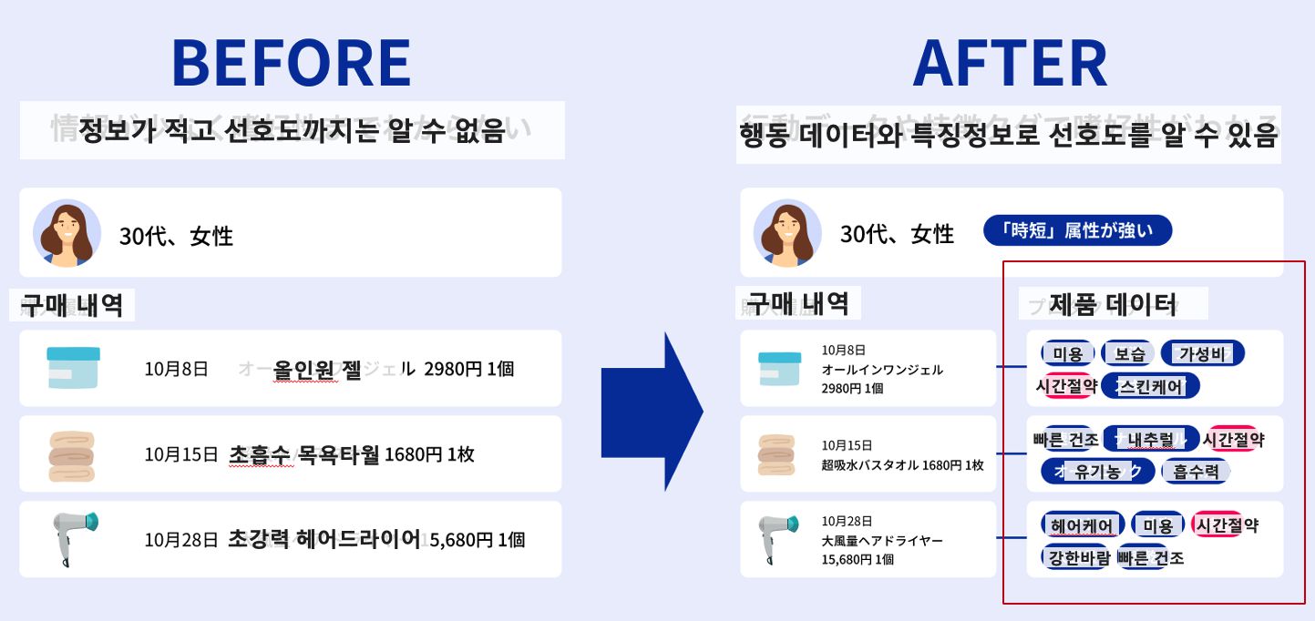 * 고객의 구매 이력과 상품 특성을 연결하여 고객의 기호를 파악