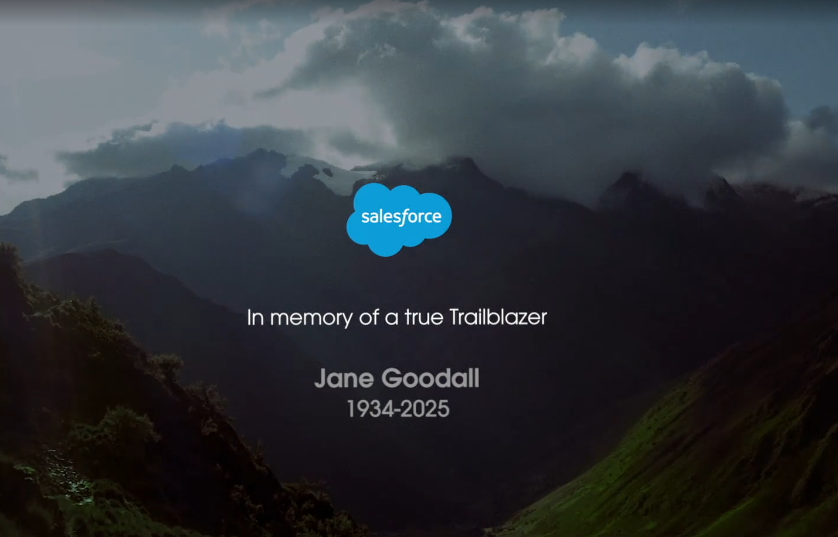 베니오프 CEO는 "Jane은 우리 모두가 믿는 것처럼 비즈니스가 변화를 위한 가장 위대한 플랫폼이 될 수 있다고 믿었기에 매년 이곳에 있었습니다"라며 Goodall 박사의 유산을 기렸습니다.