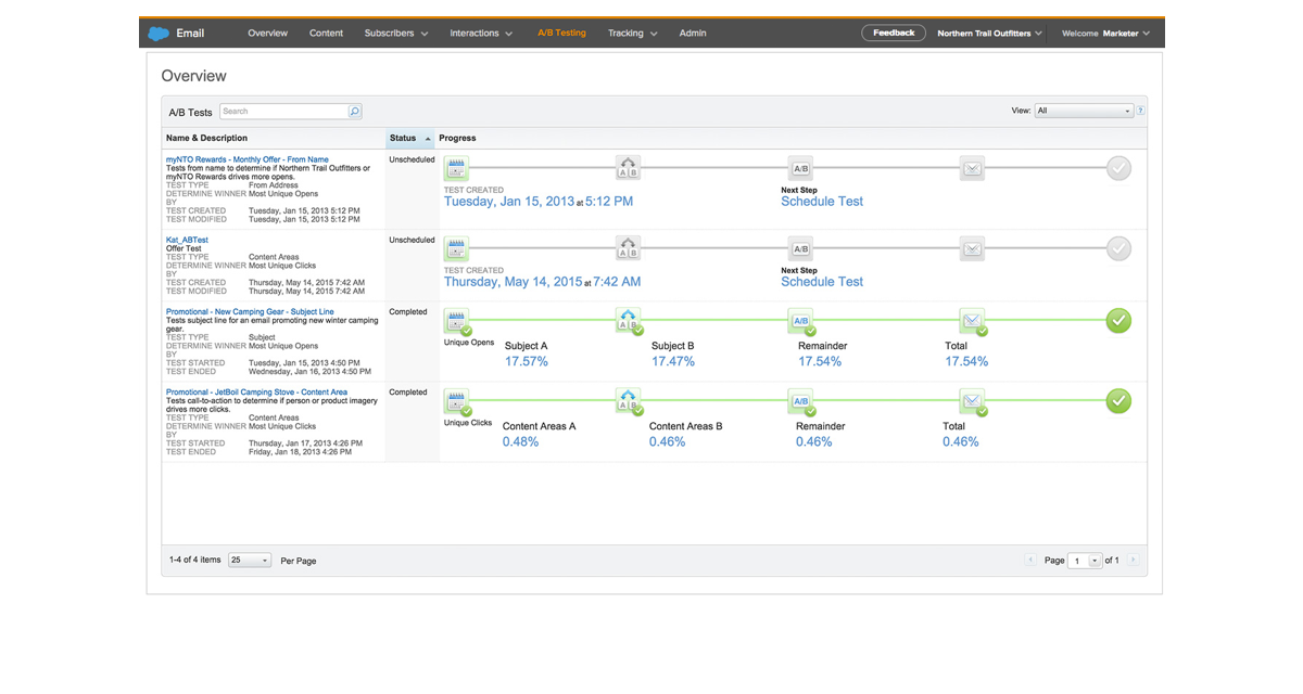 Eliminate guesswork. Test two versions of your emails, including subject line, content, images, and even time of send. Your audience will let you know what resonates. The winning message will then automatically be used for the rest of your list.