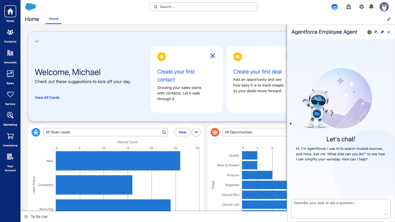 Las pequeñas empresas pueden usar la IA directamente en las suites de Salesforce, que ahora cuentan con la tecnología de Agentforce, y transformar los datos de los clientes y su contexto en medidas prácticas para todos los equipos de trabajo.
