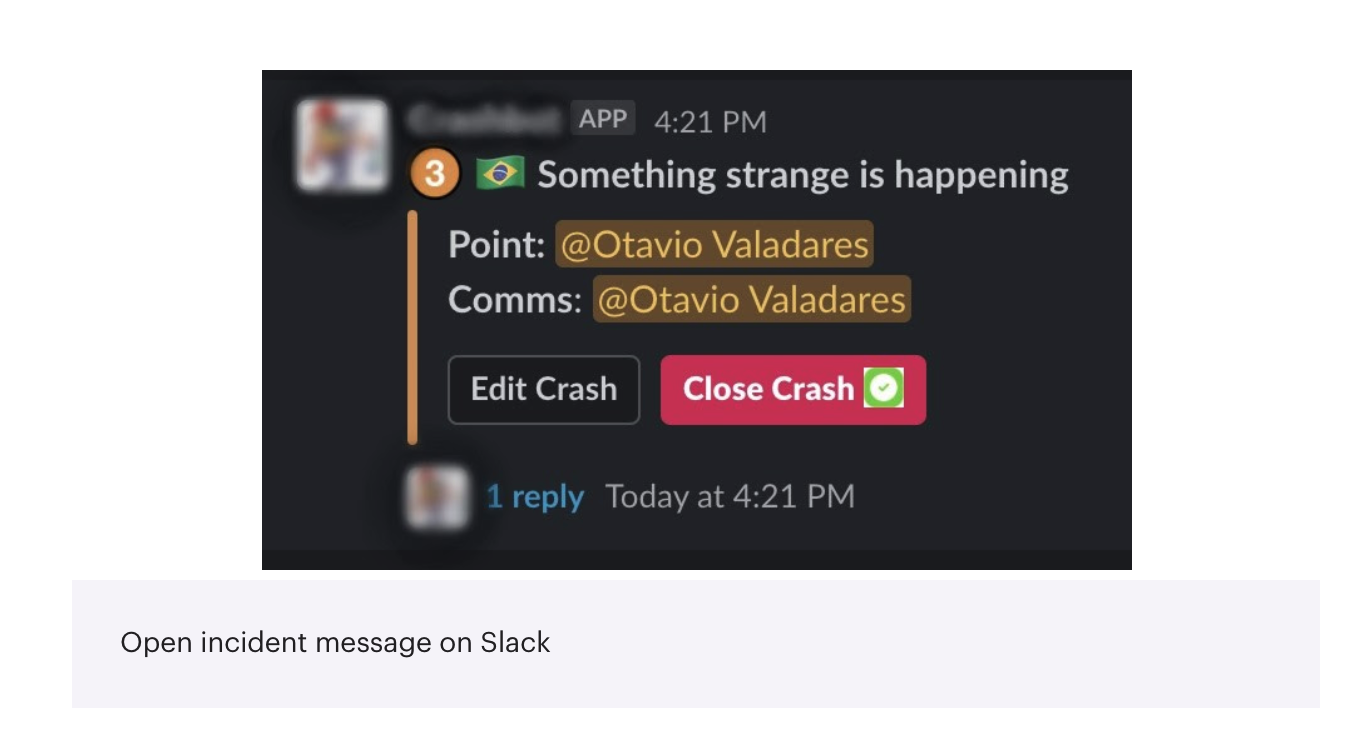 Tan importante como prevenir incidentes es la capacidad de estar preparado para una recuperación rápida y segura, mitigar los impactos y brindar la mejor experiencia y satisfacción de nuestros clientes. Identificando un incidente Nuestro sistema de alertas permite a los equipos crear notificaciones personalizadas para sus servicios y, además, cada servicio tiene también un conjunto de alertas predeterminadas, como “servicio detenido”. Los equipos reciben un mensaje en su canal de Slack y la persona responsable recibe una notificación prioritaria para comenzar a trabajar de inmediato en el problema. “Abriendo un incidente” Nubank sigue un proceso sencillo en el que el primer paso es “abrir un incidente”. Esto significa notificar a toda la empresa de que se está trabajando en un problema y que los Nubankers ya están gestionándolo. Los incidentes identificados se informan mediante un bot a través de Slack (nuestra principal herramienta de comunicación interna). Este proceso de automatización centraliza toda la gestión de incidentes: el equipo utiliza la plataforma para abrir, editar y cerrar un caso. El mayor beneficio es poder organizar rápidamente la situación, involucrar otros equipos según la índole del problema (por ejemplo, equipos de gestión de riesgos y compliance) y dar a la empresa la visibilidad necesaria.