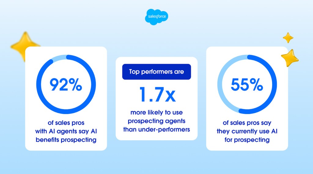 Los vendedores con mejor desempeño tienen 1,7 veces más probabilidades de usar agentes de IA para la prospección que los de menor rendimiento.