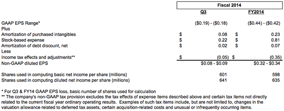 Specifically, management is excluding the following items from its non-GAAP EPS for Q2 and its non-GAAP estimates for Q3 and FY14: