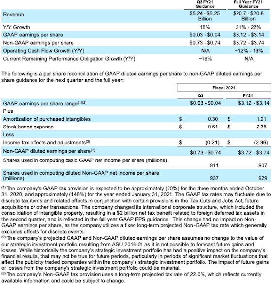 As of August 25, 2020, the company is initiating its revenue guidance, GAAP earnings per share guidance, non-GAAP earnings per share guidance, and current remaining performance obligation growth guidance for its third quarter of fiscal year 2021. As of August 25, 2020, the company is raising its revenue guidance, GAAP earnings per share guidance, non-GAAP earnings per share guidance, and operating cash flow guidance previously provided on May 28, 2020 for its full fiscal year 2021.  Management will provide further commentary around these guidance assumptions on its earnings call, which is expected to occur on August 25, 2020 at 2:00 PM Pacific Time.