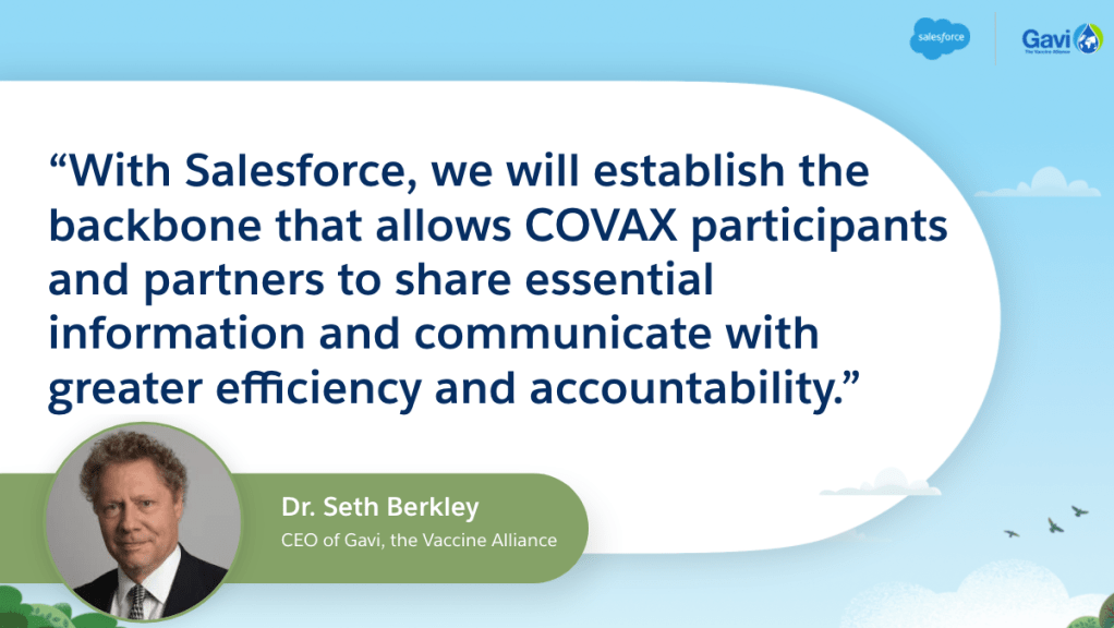 “The scale and urgency of the COVAX mission calls for tools we can expand quickly and use to manage what has become one of the largest and most complex undertakings ever in global health,” said Dr. Seth Berkley, CEO of Gavi. “With our colleagues at Salesforce, we will establish the backbone that allows COVAX participants and partners to share essential information and communicate with greater efficiency and accountability. The partnership will give people worldwide, especially in the poorest countries, access to vaccines that help protect them from COVID-19 and stem the continuing catastrophic social and economic disruption the pandemic has already left in its wake.”