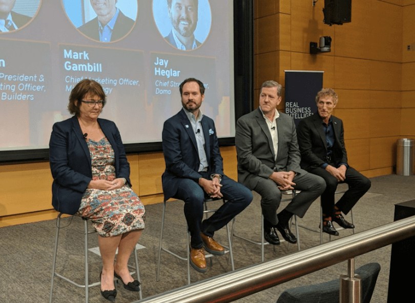 Following Peter Schwartz’s session, Keri Brooke, Vice President of Product Marketing at Salesforce, participated in a panel, What Does a Data Democracy Look Like? Moderated by Jim Ericson, Research Director, Dresner Advisory Services. The panel also included: Jay Heglar, Chief Strategy Officer, Domo; Mark Gambill, Chief Marketing Officer, MicroStrategy; and Michael Corcoran, Chief Marketing Officer, Information Builders. The panelists are seen below and a video excerpt is available here.