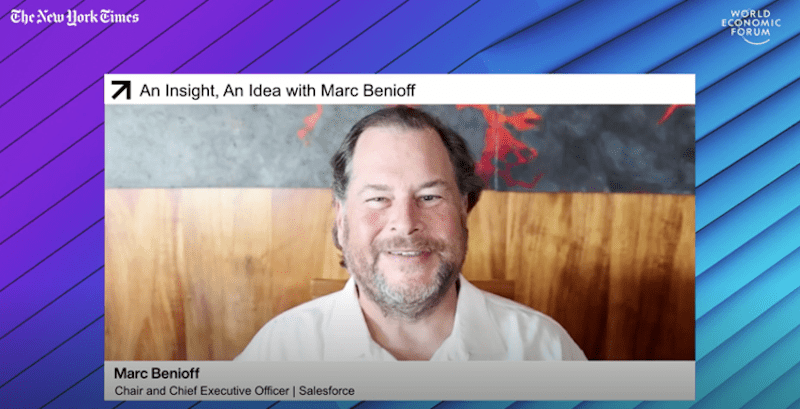 On Monday, Benioff participated in an online panel discussion on the outlook for technology governance, and on Tuesday he sat down for a fireside chat with New York Times Deputy Managing Editor Rebecca Blumenstein to discuss stakeholder capitalism, climate change, digital transformation, the future of work, reskilling, trust and more.