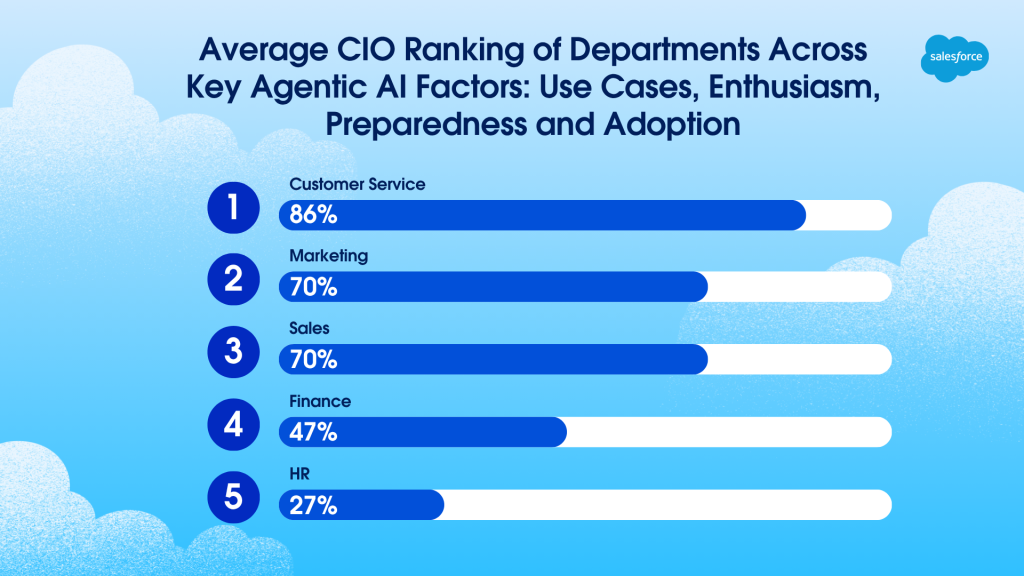 - CIOs rank customer service number one for best use cases, most enthusiasm, most prepared, and highest adoption for agentic AI.