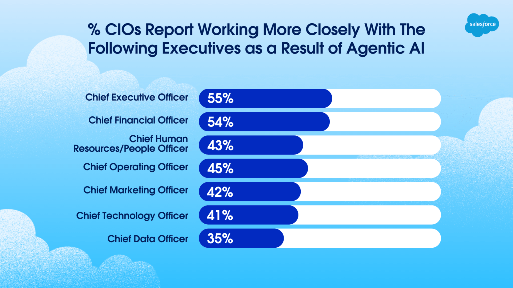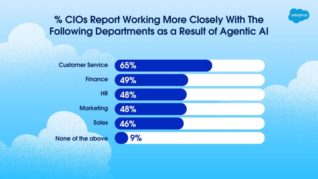 - 65% of CIOs say they are working more closely with their customer service organization as a result of agentic AI – more than all other groups.