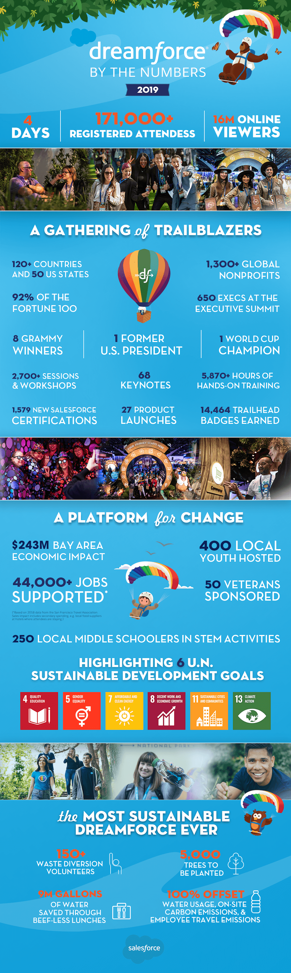 Dreamforce 2019 had over 171,000 registered attendees and 2,700+ sessions and workshops, including from speakers like Gucci CEO Marco Bizzari, chef and activist Dominique Crenn, and the CEO and co-founder of Ellevest, Sallie Krawcheck.