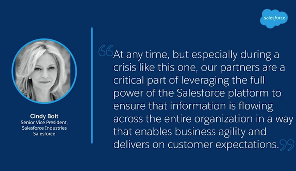 “We’ve had lots of customers not only look at how they’re leveraging Salesforce, but how they’re utilizing solutions from our AppExchange partners to connect with customers more deeply as they reopen and look to stabilize their businesses,” says Bolt. “At any time, but especially during a crisis like this one, our partners are a critical part of leveraging the full power of the Salesforce platform to ensure that information is flowing across the entire organization in a way that enables business agility and delivers on customer expectations.”
