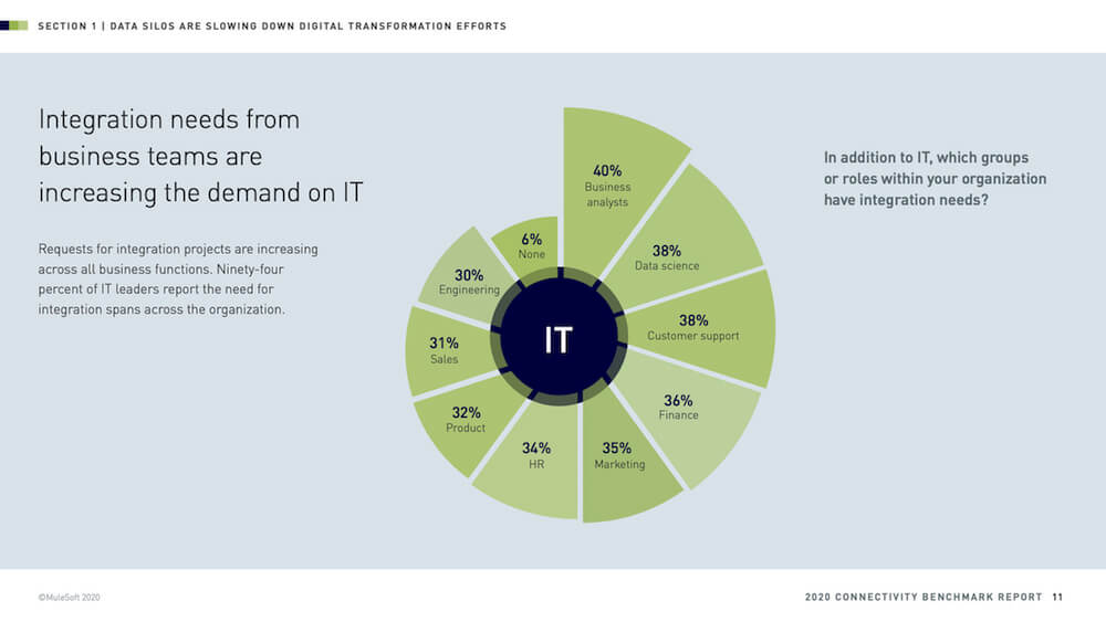 The Connectivity Benchmark Report revealed that three out of four organizations expect a negative revenue impact if they don’t complete their digital transformation initiatives in the next 12 months. In addition, more than half of respondents say their IT budgets will increase by less than 10% while their project workloads are projected to skyrocket by 40%. To complete their transformation, CIOs need to look at new tools and strategies that can help close their delivery gap.