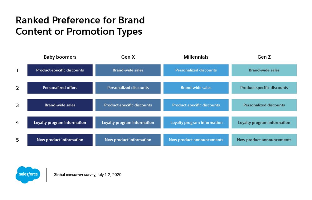 Discounts are of interest to a consumer base whose economic outlooks are uncertain, with such content preferred over information about loyalty programs and new products. As a whole, consumers prefer tailored offers and recommendations based on their unique needs and circumstances over those broadcast to a wider audience — particularly among millennials, who now constitute the largest generation in key markets.
