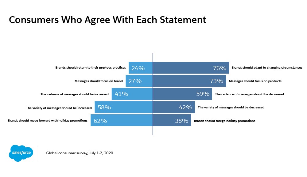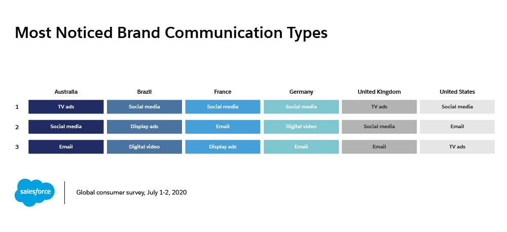 Salesforce conducted a double-blind survey of adults in the United States, United Kingdom, France, Germany, Brazil, and Australia. Data was collected on July 1 and July 2, 2020 and yielded 3,566 responses. Data is weighted to accurately represent the general population. Click here to explore data across demographics and geographies.
