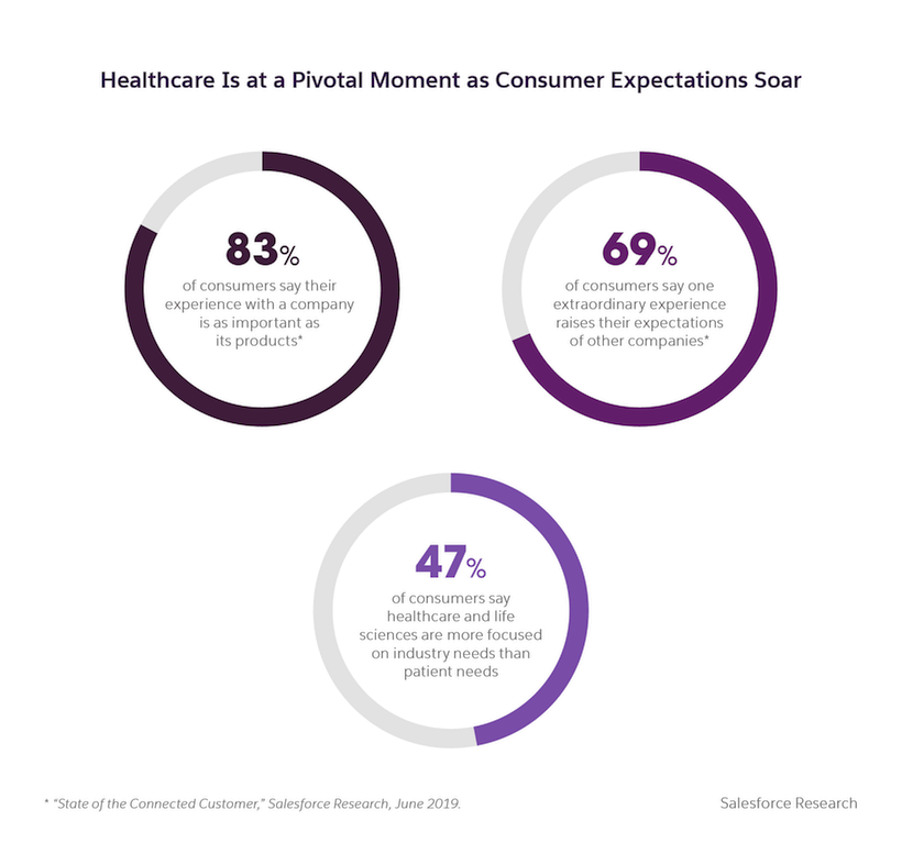 For decades, the healthcare and life sciences industries have wrestled with outdated technology and a fragmented ecosystem. Now, they face another challenge: meeting the growing expectations of healthcare consumers. Salesforce Research’s newly released Connected Healthcare Consumer report, based on a survey of nearly 6,000 healthcare consumers worldwide, provides insight into what today’s healthcare consumers expect from providers, insurers, and pharmaceutical and medical device companies.