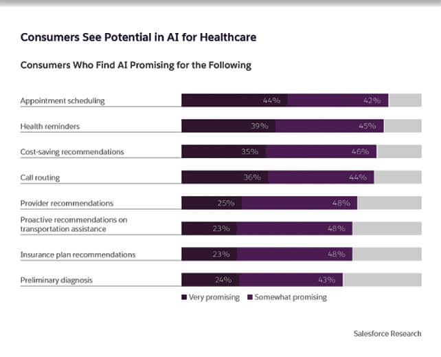 Providing quality care at scale while keeping costs down is a big challenge in healthcare. Could artificial intelligence (AI) help? According to our research, consumers believe AI can increase efficiency and deliver personalized recommendations, through appointment scheduling, health reminders, and cost-saving recommendations.