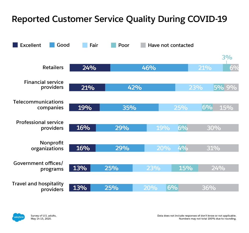Salesforce conducted a double-blind survey of adults in the United States, United Kingdom, France, Germany, Brazil, and Australia. Data was collected between May 14 and May 15, 2020 and yielded 3,569 responses. Data is weighted to accurately represent the general population.